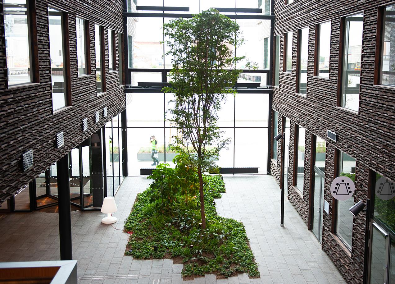 Epics grönskande atrium är inte bara vackert, det är dessutom till stora delar byggt av lokalt upcyclade material. Spännande, eller hur?